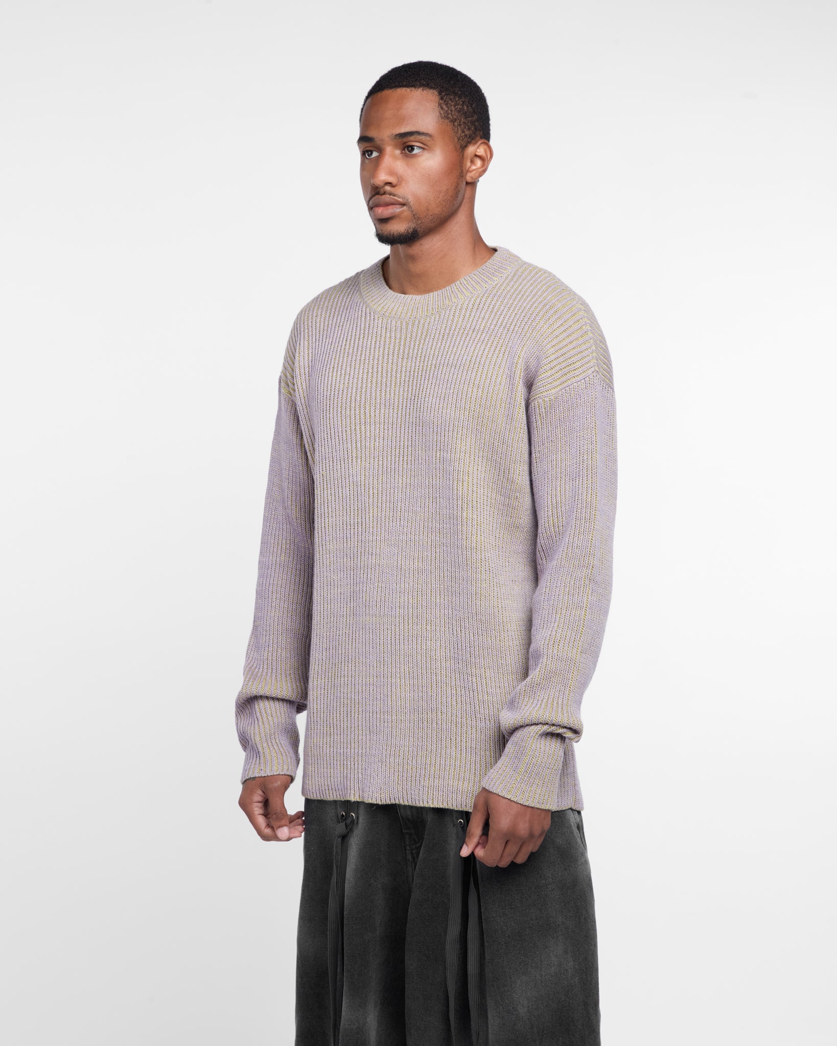 Knitted sweater with a double-sleeve design in two shades of wool. Made from merino wool and baby suri alpaca, providing softness.